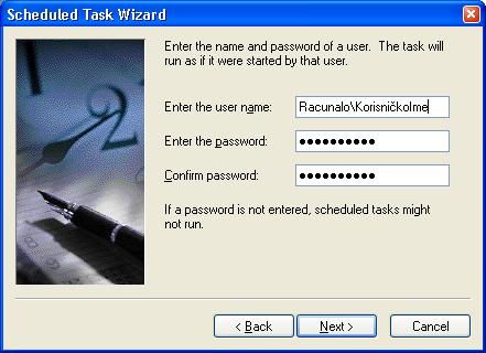 - Upišite Vaše Windows korisničko ime dva puta lozinku i kliknite Next.