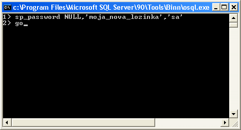 - Na zaslonu će se pojaviti crni "Command Prompt" prozor u kojem će biti prikazano samo 1> i trepteći kursor. U ovaj prozor upišite USE master , pritisnite Enter te u novoj liniji upišite go i pritisnite Enter kao na sljedećoj slici.