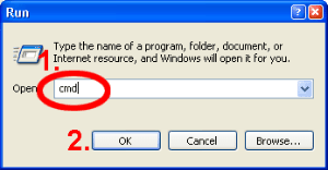- Upišite cmd kao na sljedećoj slici i pritisnite OK.