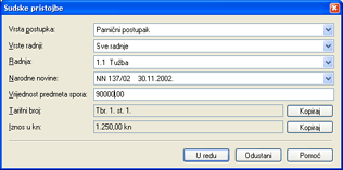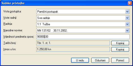 Izračun sudskih pristojbi projekta Sudačka mreža baziran je upravo na ovom modulu.