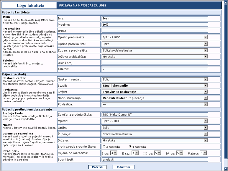 Prijave - Razredbeni postupak